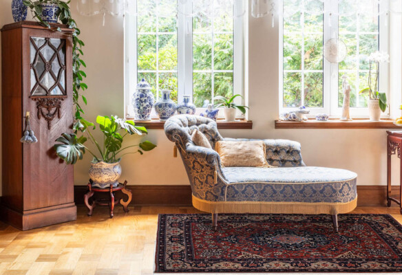 In particular, this antique Esfahan fits easily because of the very current patterns and colors.