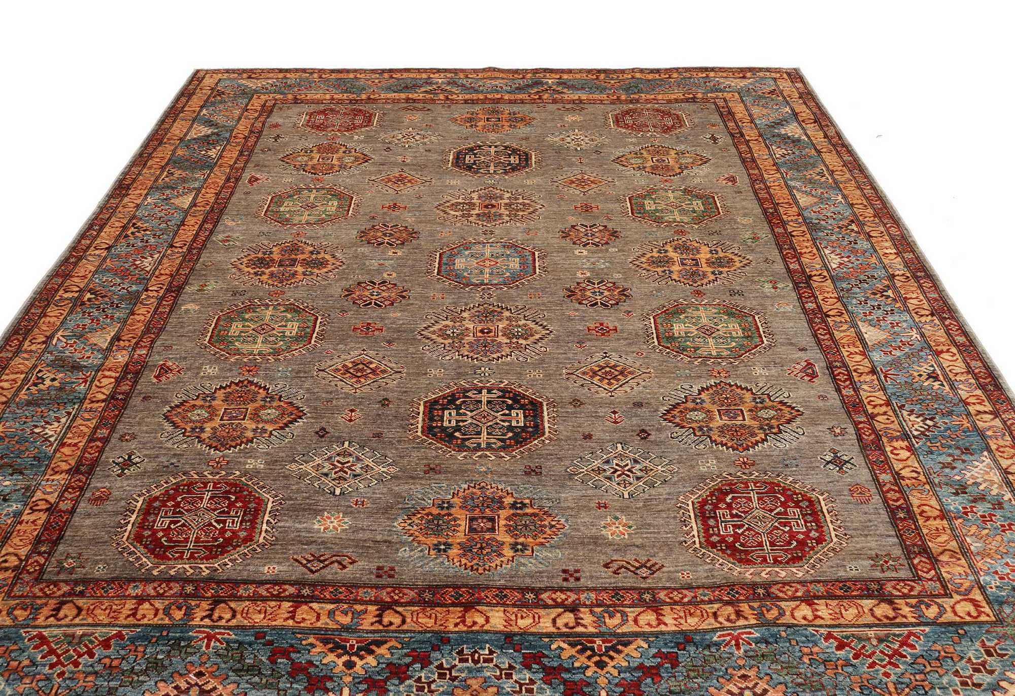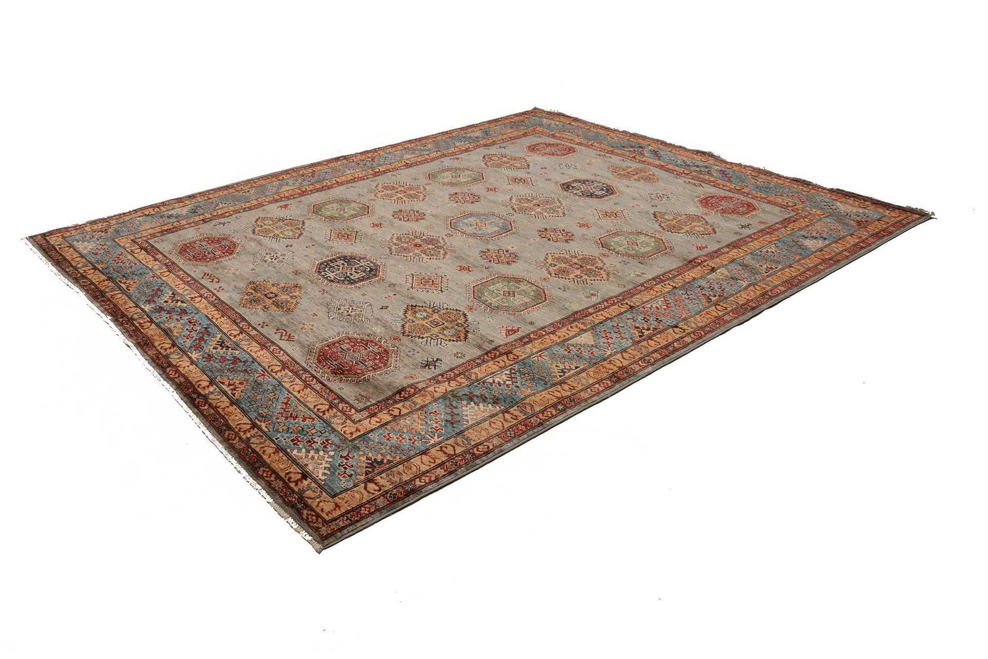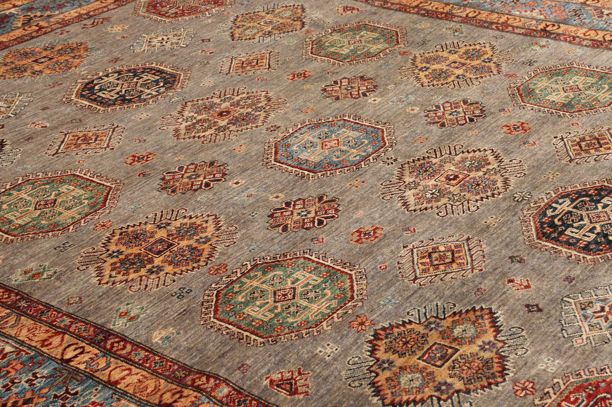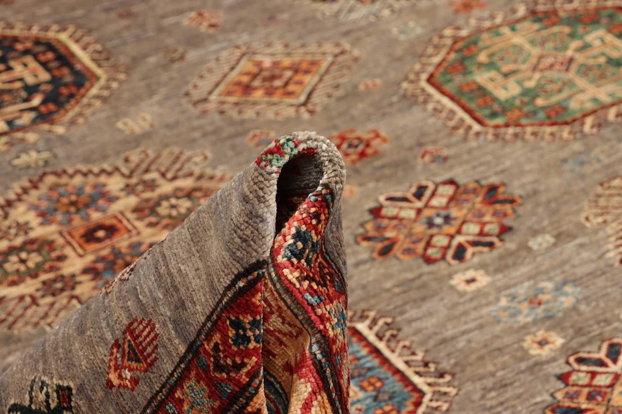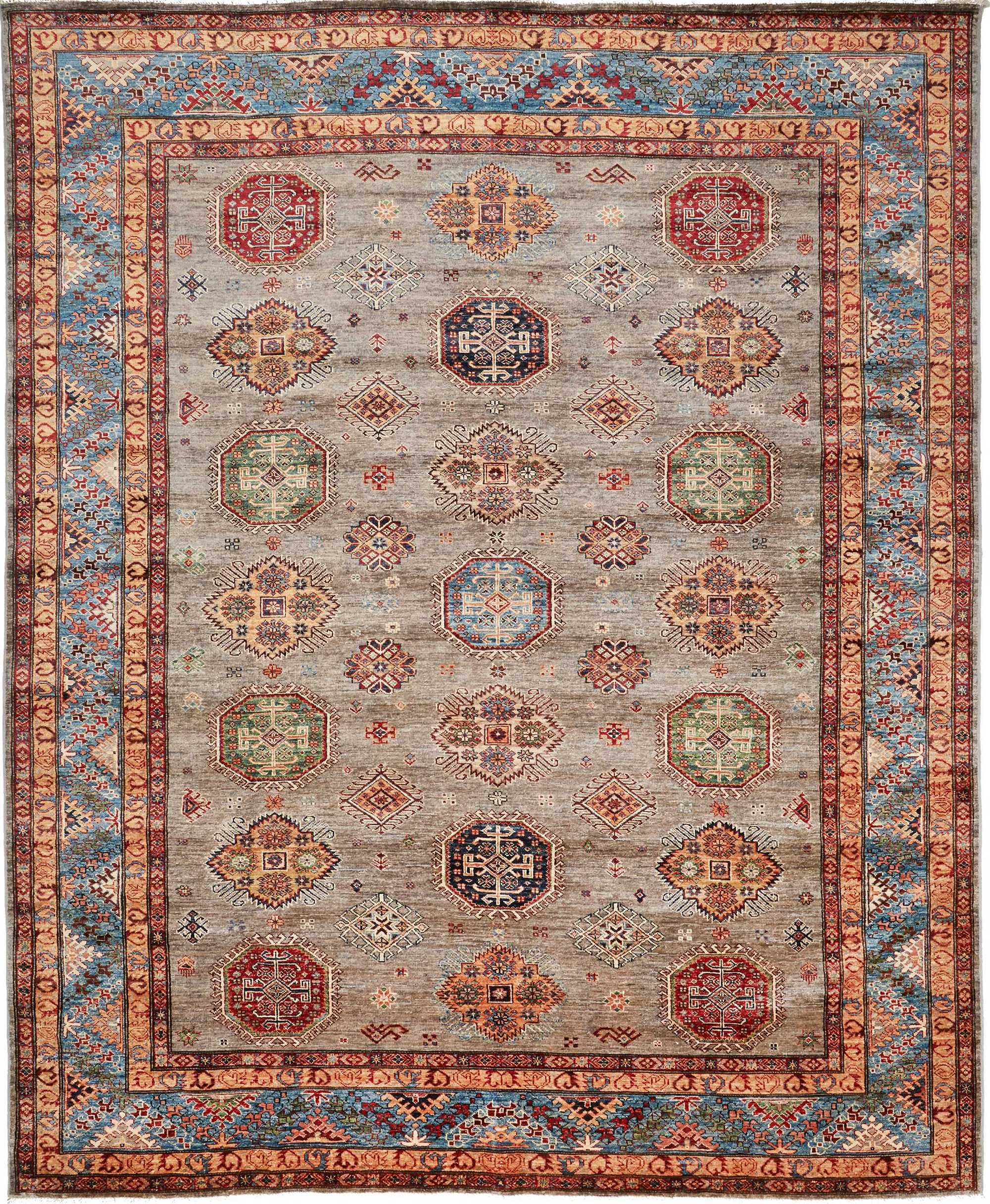 Although the name “Kazak” comes from a historical region in the Caucasus, Kazak Perc rugs are made today mainly in Afghanistan, by skilled Turkmen artisans.
