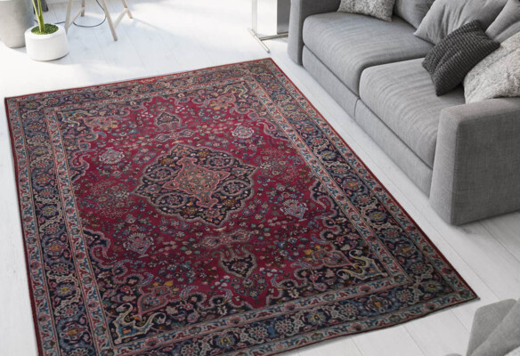 The Persian Mashad carpet knotted with local wool produced by local artisans in the Khorasan region, very resistant woven and twisted wool absorbs color well.