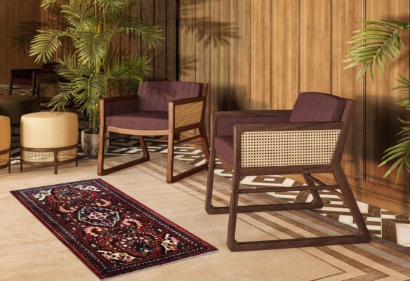 Lilian Persian carpet have warm colors with a plain field pattern.